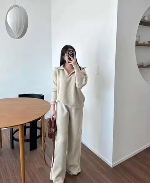 ニットワイドパンツセットアップ