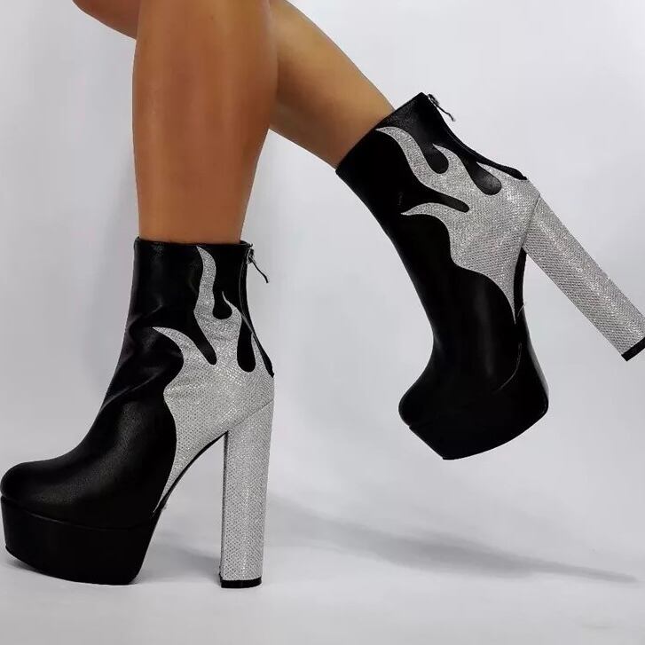 ファイアーパターンチャンクブーツ(ブラック×シルバー)