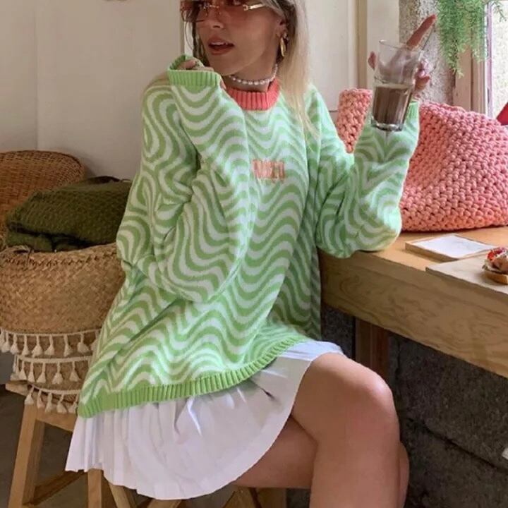 Y2k ピスタチオマーブルニットトップス