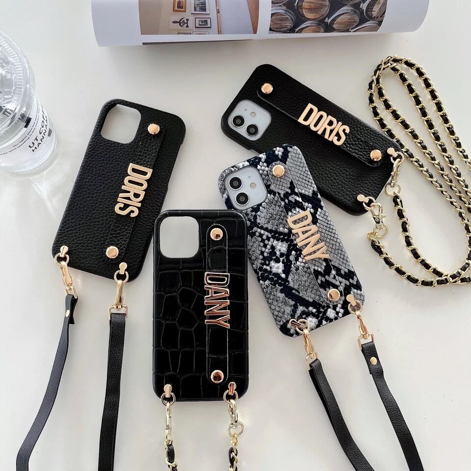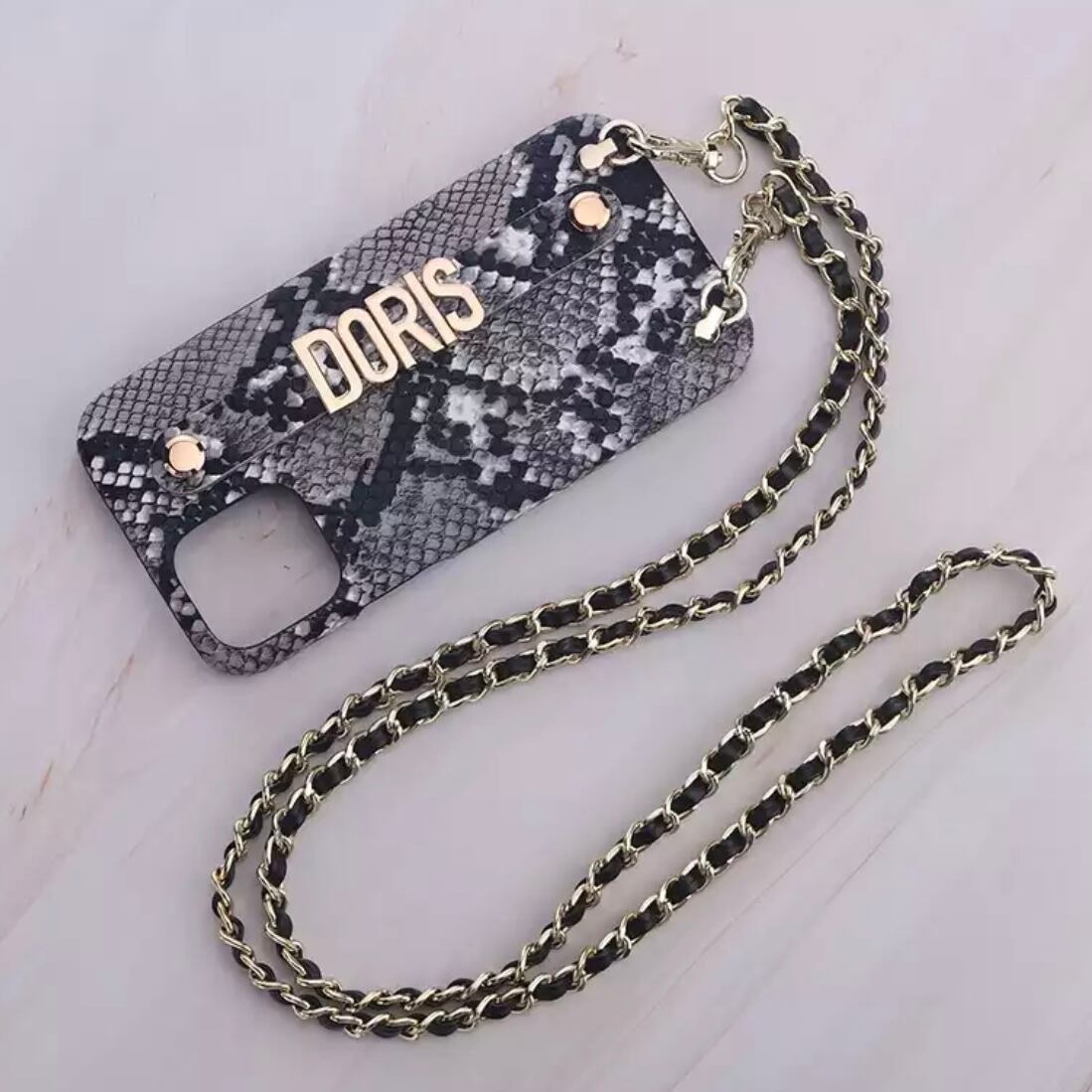 ストラップチェーン付きカスタムネームiPhoneケース