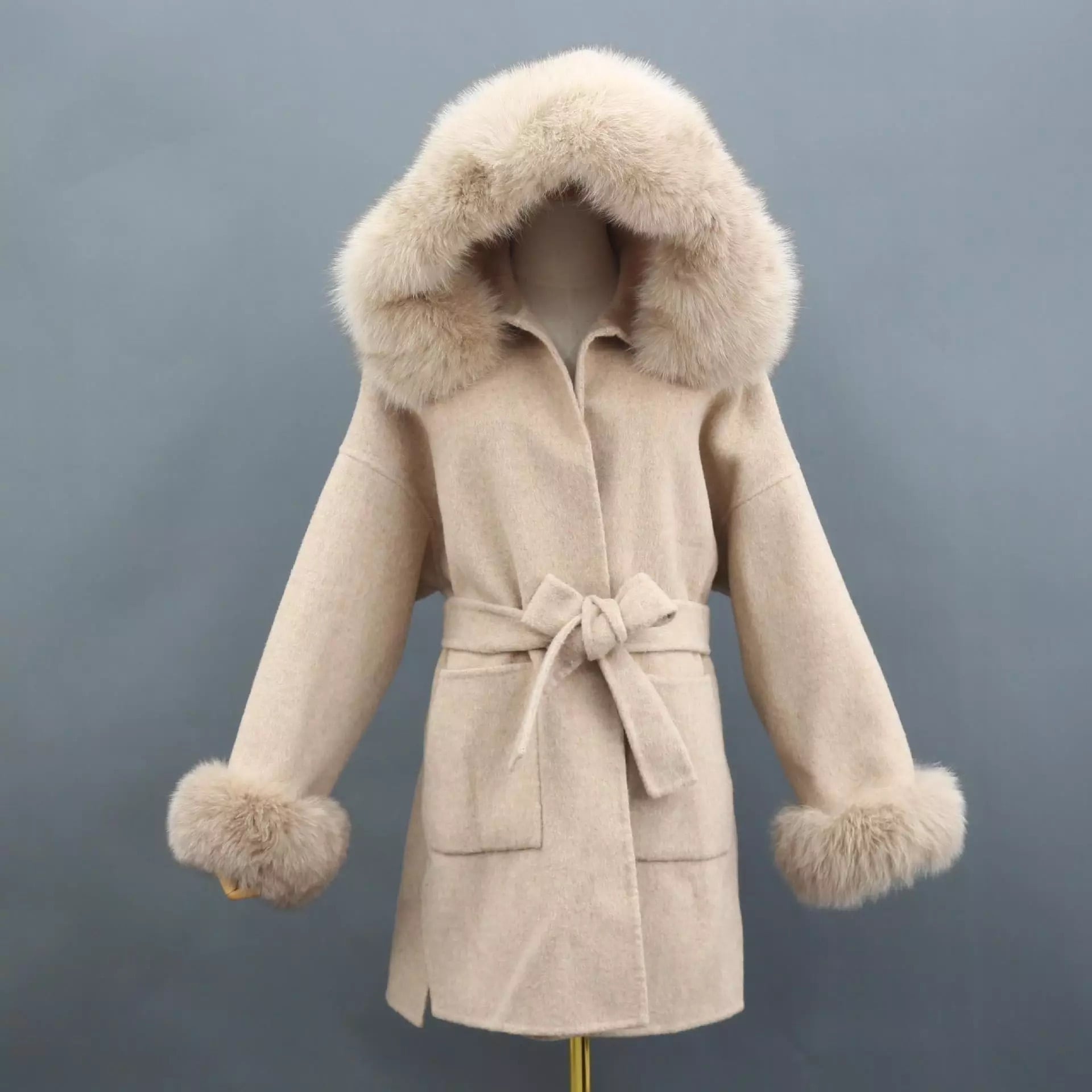 スリーブ&フードリアルファー ウールコート